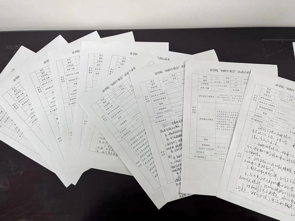 午餐会后,每位参与的学院领导及教师都会认真填写《“向阳”午餐会活动记录表》,详细记录了谈话内容,特别是学院一些典型问题或意见建议。