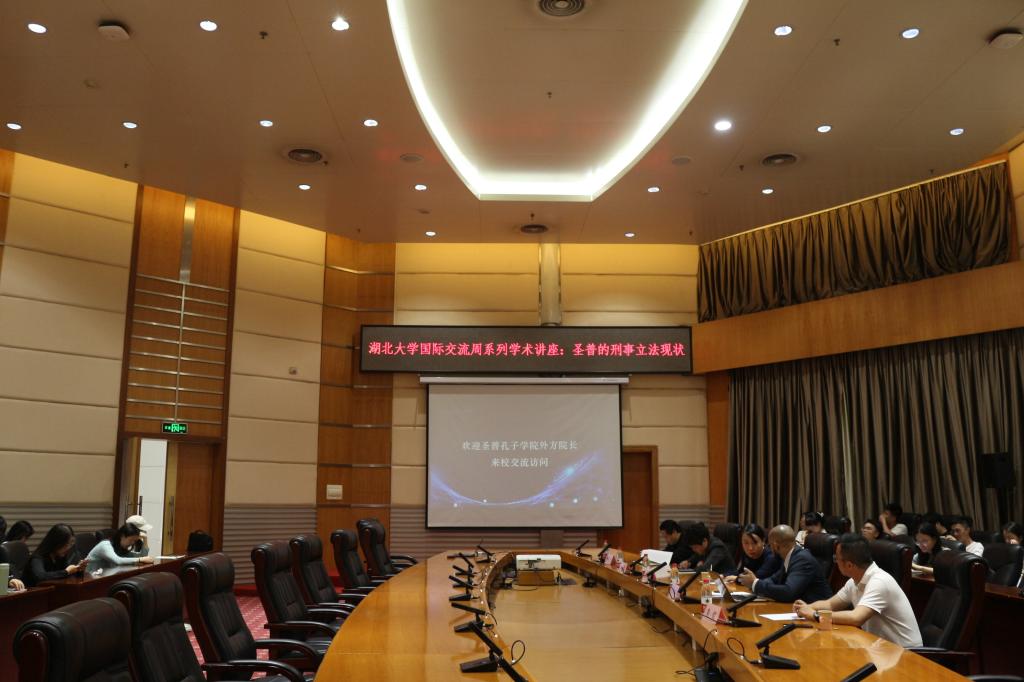 4月17日上午9点,题目为“圣普的刑事立法现状”的太阳成集团tyc9728国际交流周系列学术讲座在会议中心思齐厅召开,圣普孔子学院外方院长Lúcio Magalhães、中方院长白梦璇,9728太阳集团院长邹爱华、副院长江岚和龚哲副教授参加讲座。9728太阳集团副院长江岚代表各位老师和同学对Lúcio Magalhães教授的来访交流表示了热烈欢迎。