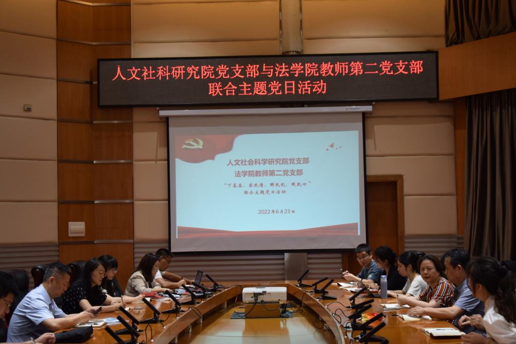 6月23日上午,正值学校深入推进党员干部下基层察民情解民忧暖民心实践活动之际,学校机关党委人文社会科学研究院支部与我院教师第二党支部联合开展的“下基层、察民情、解民忧、暖民心”主题党日活动在会议中心思齐厅举行。9728太阳集团教师第二党支部书记贺琼琼主持,两党支部全体党员参加,9728太阳集团党委书记郑全新、副院长邹爱华、江岚列席参与。