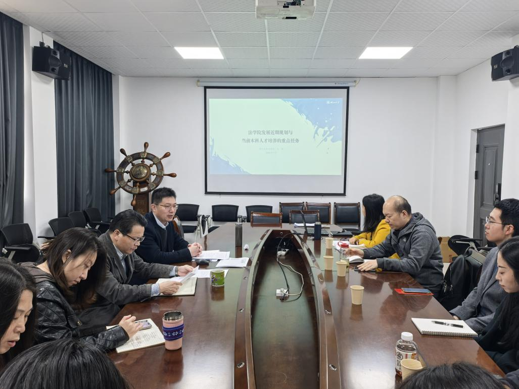 最后,院长邹爱华作总结讲话。他强调,本科生人才培养,是学院事业的发展根基,其规模与质量深刻影响着学院与学科的发展。当前,在教育部实施专业动态调整的大背景下,学校对本科专业的设置与调整也作了新的要求。面对这一新的变化,学院要积极面对,自我改革,主动应对法学本科专业所面临的挑战和机遇。希望大家能够凝心聚力、锐意进取,共同推动学院本科人才培养迈上新的发展阶段。
