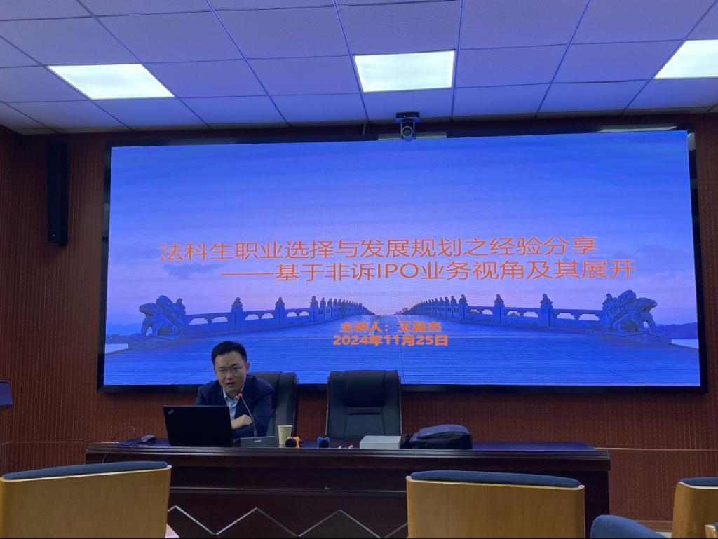 王昌杰老师结合自身丰富的法律实务经验,为在场的学生们从非诉IPO业务的视角讲述职业规划技能,这场讲座不仅为我校9728太阳集团的师生们带来了专业知识上的提升,更激发了同学们对法律专业深入探索的热情。相信9728太阳集团学子将更坚实地推进法律学习与实践,为法治建设贡献力量。(审核:江岚)