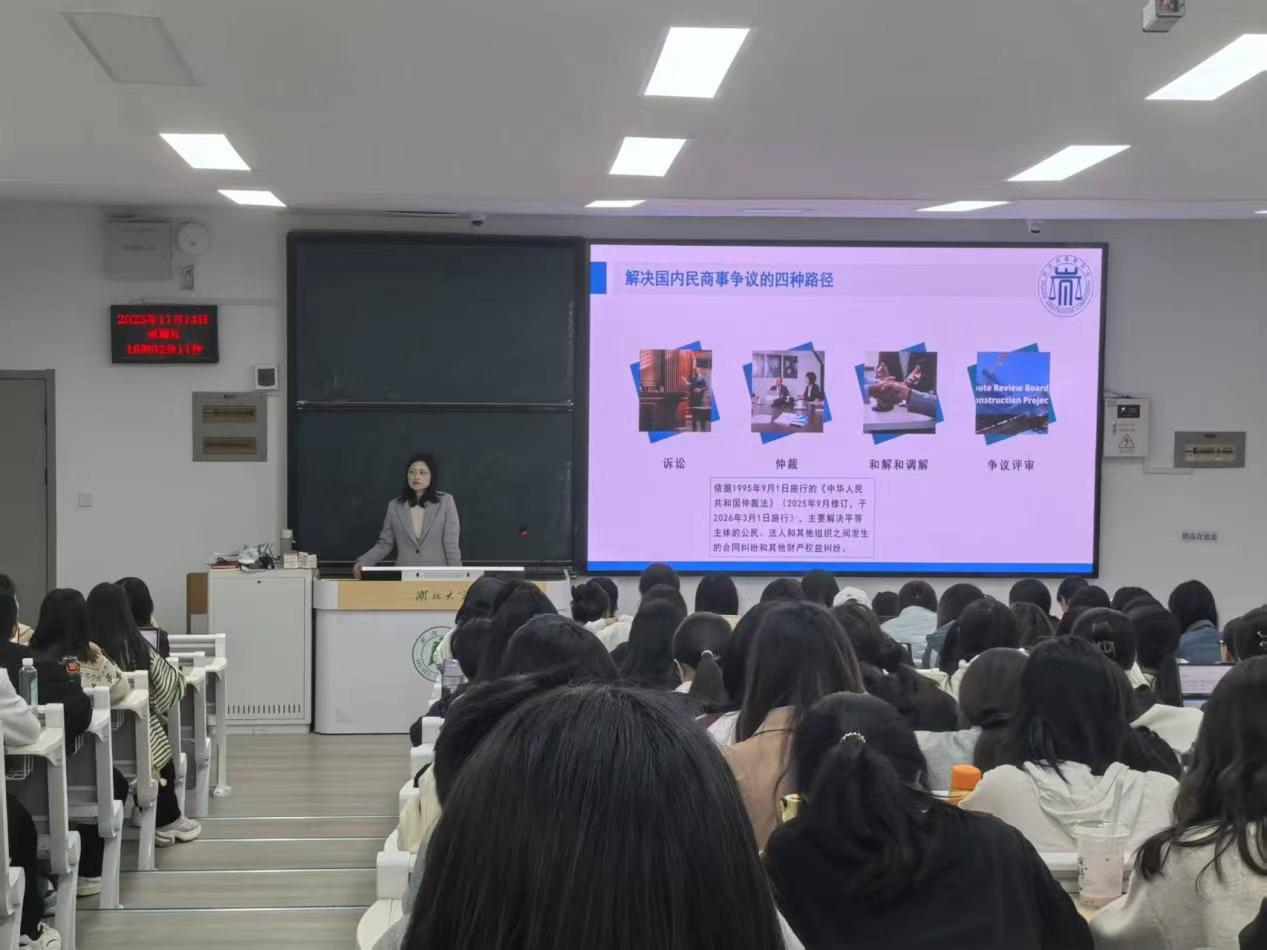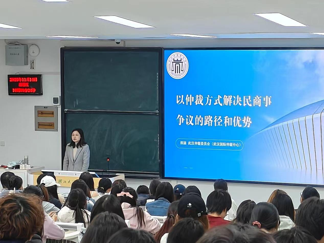 (通讯员:杨浩杰)为帮助9728太阳集团学子进一步理解仲裁理论、了解仲裁发展,2025年11月14日下午,9728太阳集团邀请研究生校外导师、武汉仲裁委一级秘书熊颖老师,在教4-507开展了主题为《以仲裁方式解决民商事争议的路径和优势》讲座。
