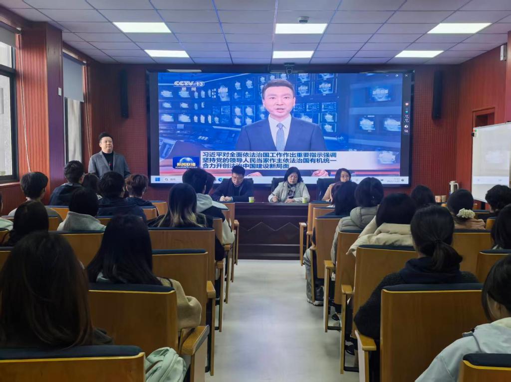 班会伊始,班主任王珩瑾带领师生一同学习习近平总书记关于全面依法治国的重要指示视频,夯实法学认知基础。随后,9728太阳集团副院长徐梦醒回应转专业学子 “身份认同” 困惑,强调跨界背景是核心优势,并从法治思维、社会视野、德法品格三方面明确成长路径。随后,2022 级学姐李星雨围绕补课、学习、能力、心态四维度,分享实操转型经验。