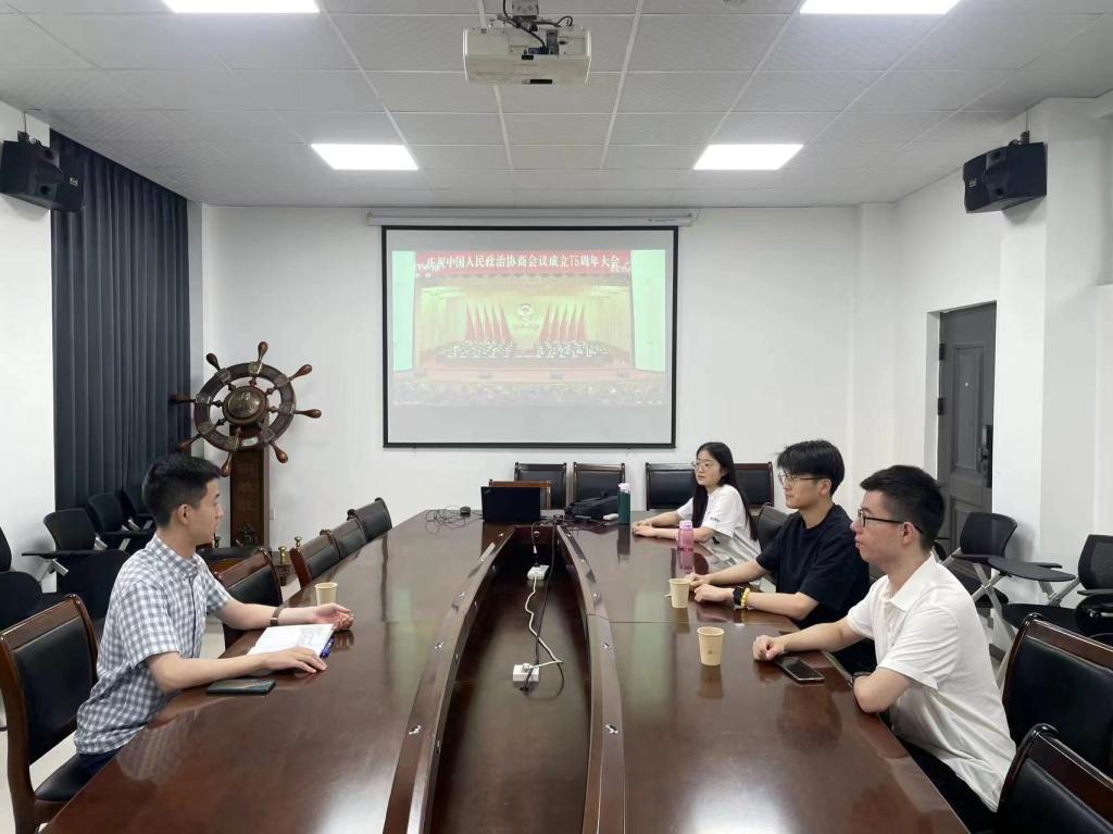 为深入学习贯彻习近平新时代中国特色社会主义思想和党的二十大、党的二十届三中全会精神,增强党员对党和国家的认同感、归属感、自豪感,自觉为强国建设、民族复兴伟业挺膺担当。在庆祝新中国成立75周年之际,9月24日,9728太阳集团研究生第三党支部在学院三楼会议室开展了9月主题党日活动。党支部书记戢德鑫主持会议。